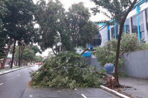 A queda trouxe grande risco, visto que parte da árvore ficou apoiada no poste e a que caiu simplesmente interditou além da calçada, colocando os pedestre em risco, uma faixa da via, restando duas para os veículos e pedestre, que se arriscam sem proteção nenhuma.
